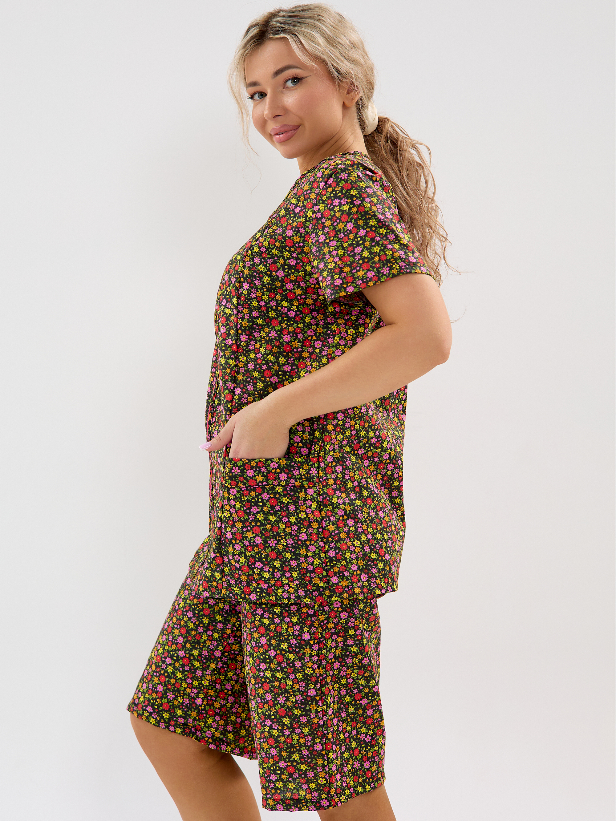 Главная Женская одежда Комплекты Костюм с шортами из бязи м54черный