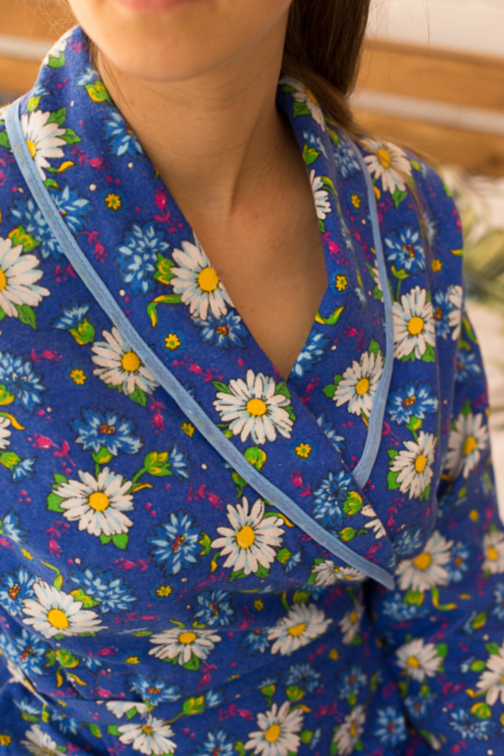 Халат женский фланелевый на пуговицах Ромашки с незначительным непрокрасом ткани