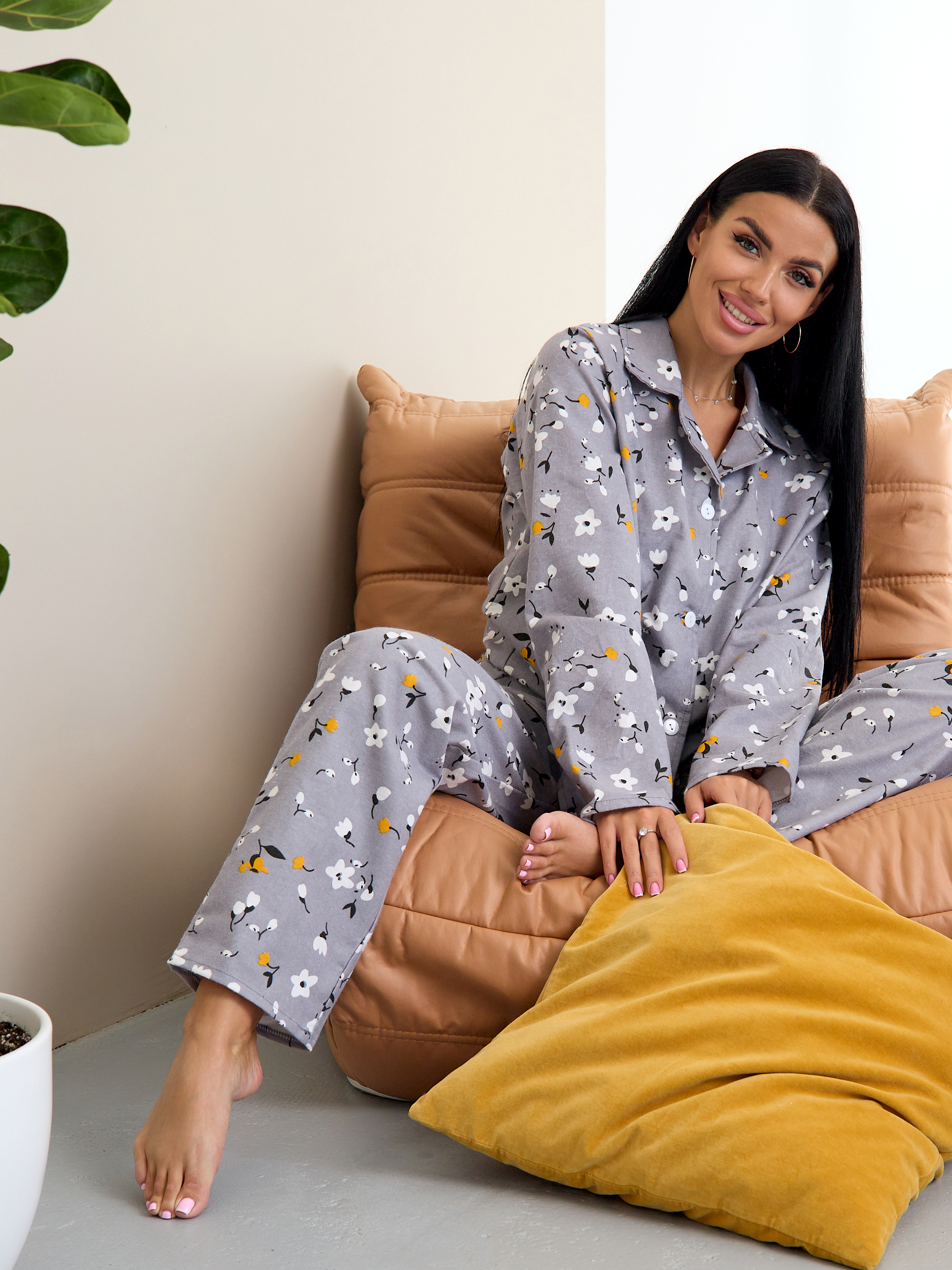 Главная Женская одежда Фланель Пижама женская м23 серая